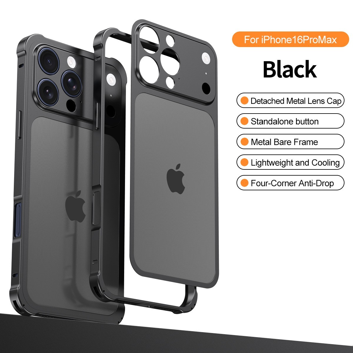 Custodia pellicola fotocamera posteriore in lega con telaio in metallo per iPhone16 15 14 Pro Max trasforma in 17Pro